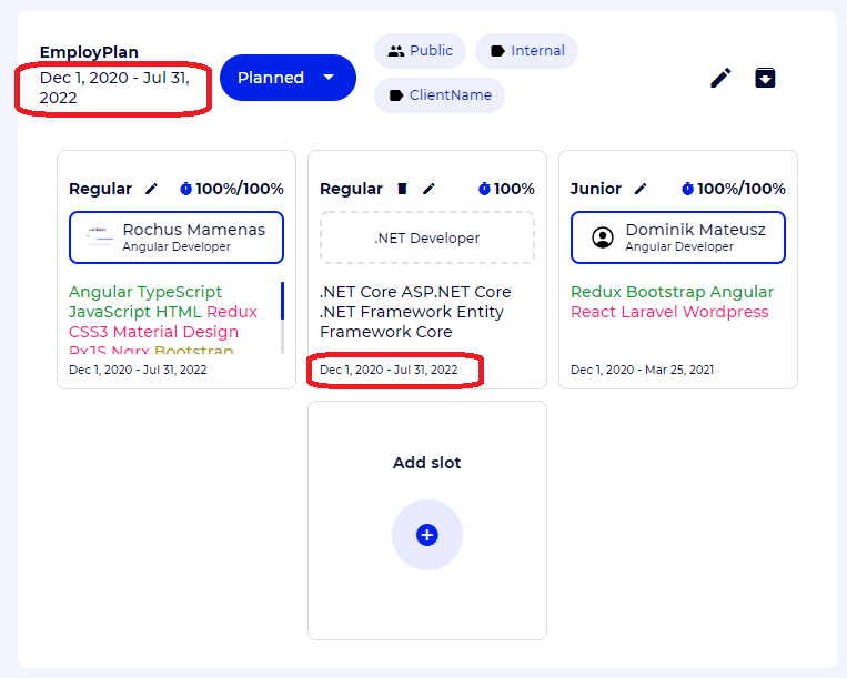 1. If there is no date specified on an allocation card, project date will be displayed instead. Previously allocation cards that had no date specified would not display any date at all, this was confusing to our users